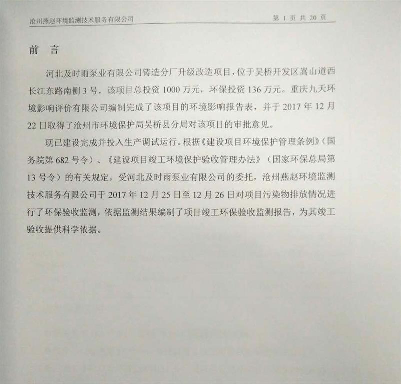 河北及時(shí)雨泵業(yè)有限公司鑄造分廠升級(jí)改造項(xiàng)目竣工環(huán)境保護(hù)驗(yàn)收意見公示