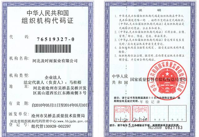企業(yè)資質(zhì)-河北及時雨泵業(yè)有限公司